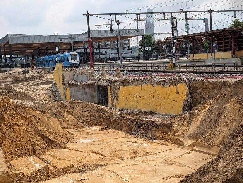 De noordkant van het station. Rechts hiervan komt vanaf 2025 een nieuwe tunnel voor fietsers en voetgangers. De huidige tunnel en de bebouwing verdwijnt.