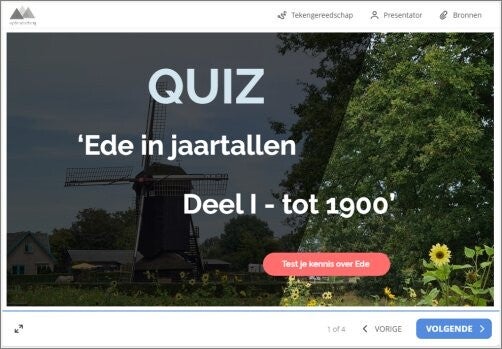 Atlas van Ede biedt alle toetsen bij de Cursus 'Ede - Toen en Nu' gratis aan. Ook maak ik regelmatig een toets over een algemeen onderwerp. Het zijn steeds eenvoudig te bedienen quizzes over Ede, met zo'n 10 tot 15 vragen. Klik op een afbeelding om een quiz te starten. Afname is anoniem. Er worden geen gegevens van je opgeslagen. Een quiz is af te nemen op een pc, MAC, Chromebook, iPad, tablet of telefoon.