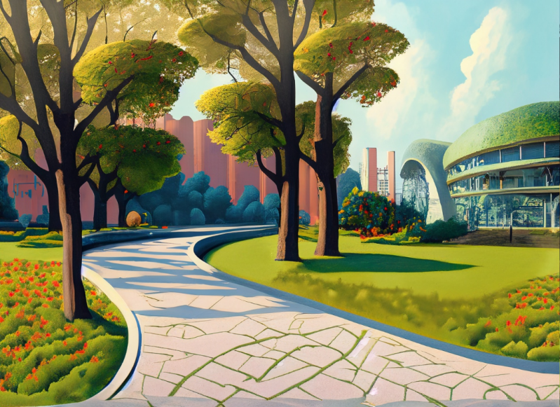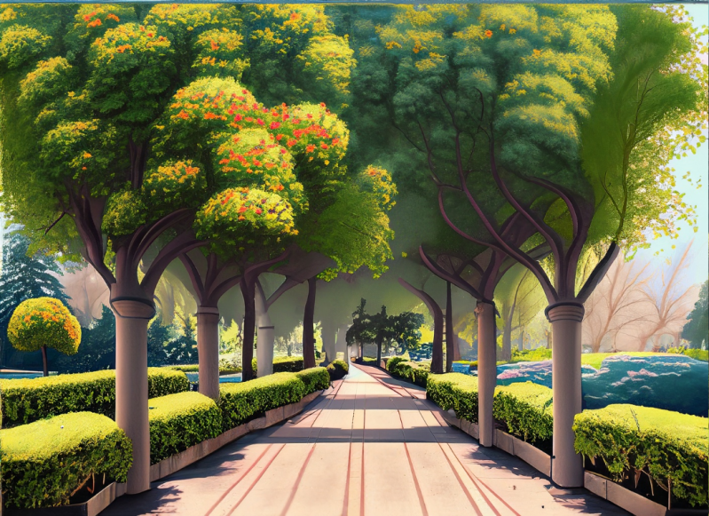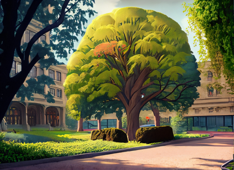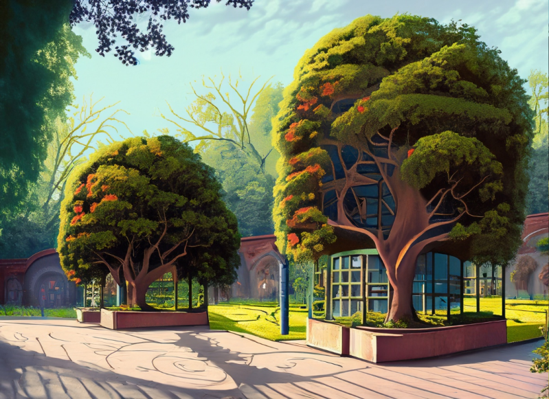 Impressie wandelroute door de uitbreiding van het arboretum van al aanwezige monumentale bomen | AI-gegenereerd.
