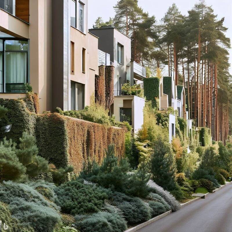 Strook 3: groene appartementengebouwen | AI-gegenereerd.
