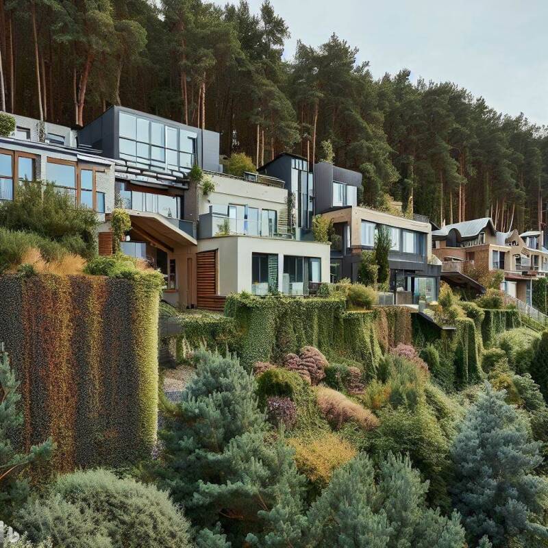 Strook 1: kleinschalige woningen met een sedumdak | AI-gegenereerd.