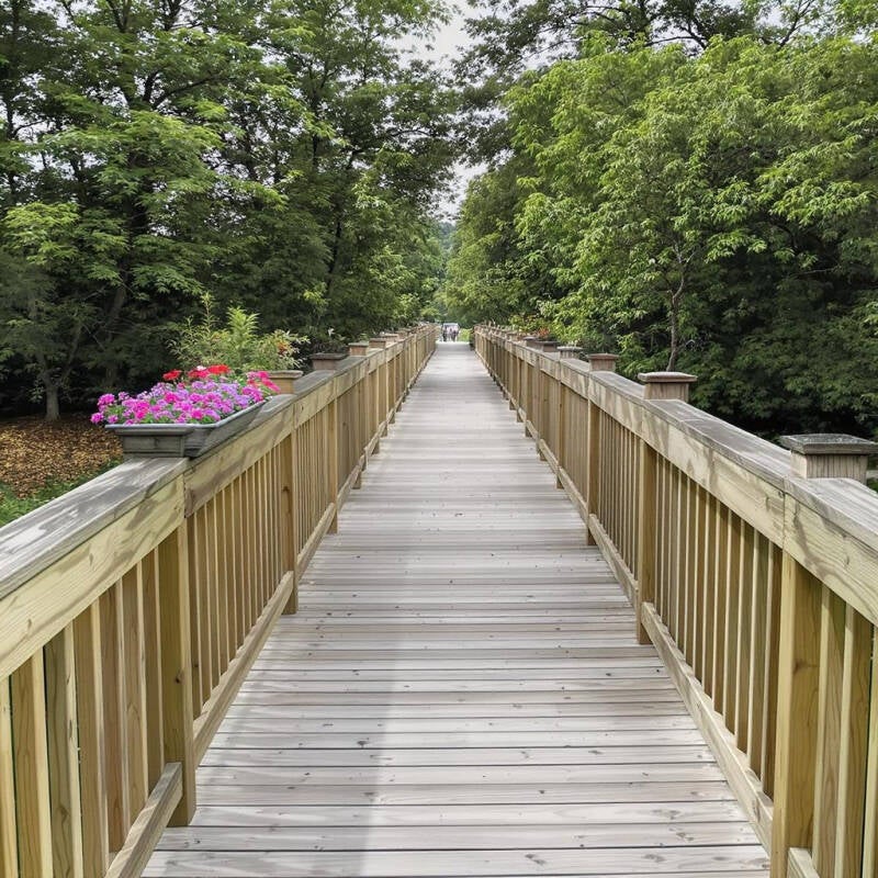 Het nieuwe station Ede-Wageningen heeft op dit moment geen blik op Ede gericht. Aan de voorzijde (zuid) kijk je (straks) op de houten blokkendoos van de parkeergarage, en aan de andere zijde loop je (straks/ najaar 2025) enkel naar het Akoesticum. Op geen enkele wijze worden bezoekers in de richting van het Edese centrum geleid. Met het bouwen van een brede en sierlijke houten brug over de Klinkenbergerweg kun je wandelaars en fietsers (met ov-fiets) naar de fietsstraat Stationsweg leiden, waarlangs ze naar het centrum kunnen woren geleid. Aan de Frisokant komen zittredes, met uitzicht op de kazernes uit 1906. Er komt optimale verlichting, voor het creeren van een veilig gevoel. Langs de looproute komen borden met tips om te bezoeken in Ede en QR-codes naar de diverse short walks (korte wandelingen) van de Atlas van Ede. De verbinding wordt heel groen ingericht en loopt door de boomkruinen van de bomen langs de Klinkenbergerweg. In principe blijven alle huidige bomen daar staan. Het maakt daarbij deel uit van mijn plan van het Groene Lint, mede door het plaatsen van bakken met bomen. Deze bomen maken deel uit van mijn plan te komen tot een Keltische bomenkalenderroute. Denk dan aan de olijfboom, pijnboom en cipres, bomen die je niet standaard in de natuur tegenkomt, maar wel binnen de Keltische bomenkalender.